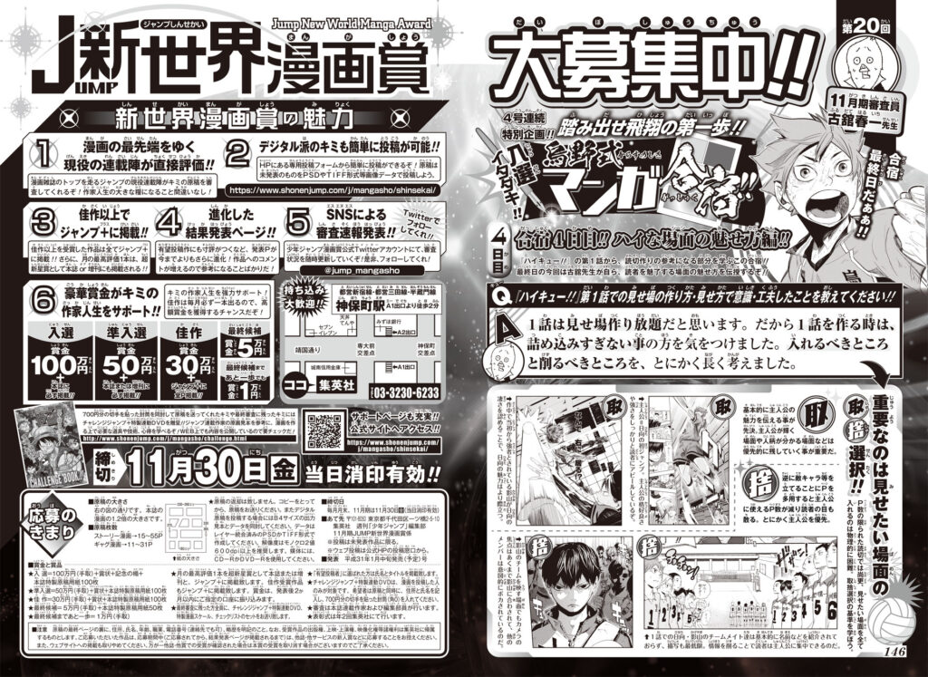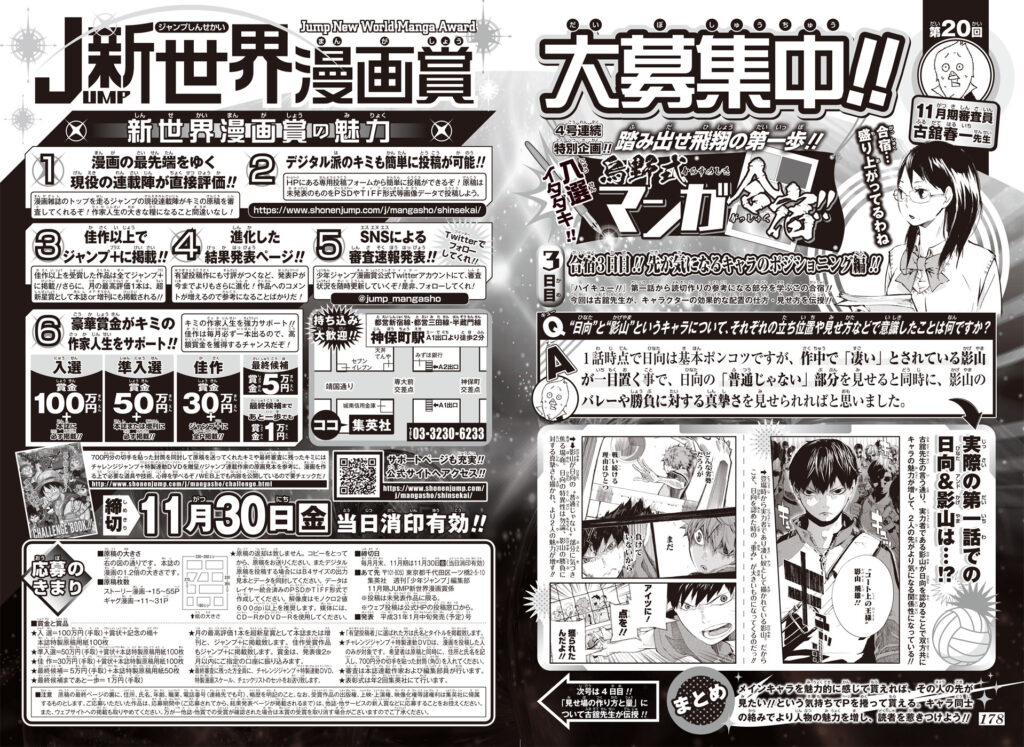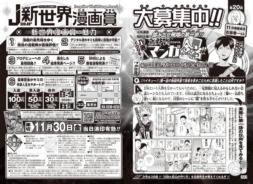 1日目『ハイキュー!!』飛翔の第一歩を徹底分析!! 【第20回】 審査員:古舘春一 踏み出せ飛翔の第一歩!! 入選イタダキ!! 烏野式マンガ合宿!! #キャラクター #ハイキュー!! #企画 #古舘春一